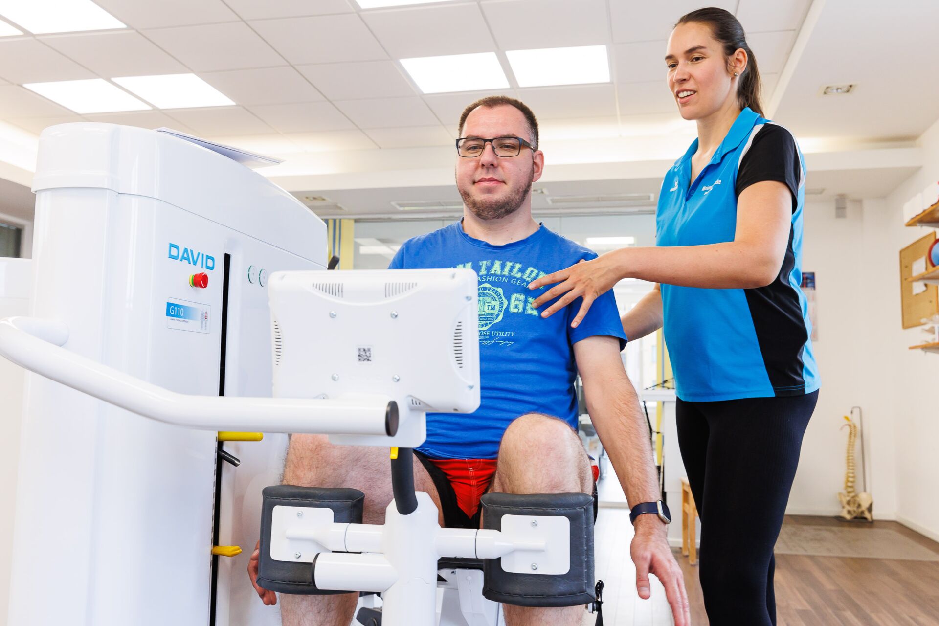 In der 3. Etage führen wir an modernen David-Trainingsgeräten unsere Muskelfunktionsanalysen der Wirbelsäule (MFA) und das IV-Programm durch.