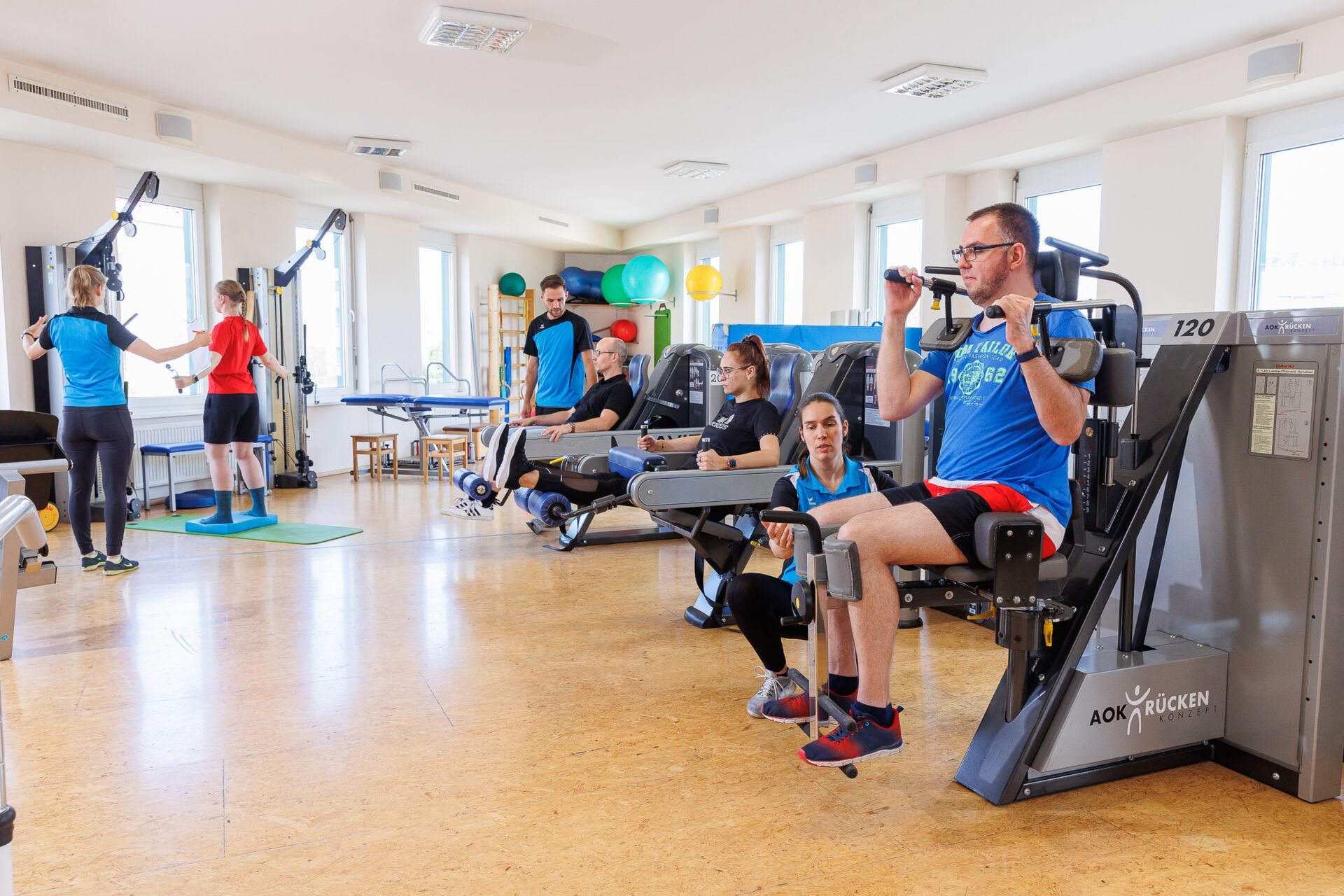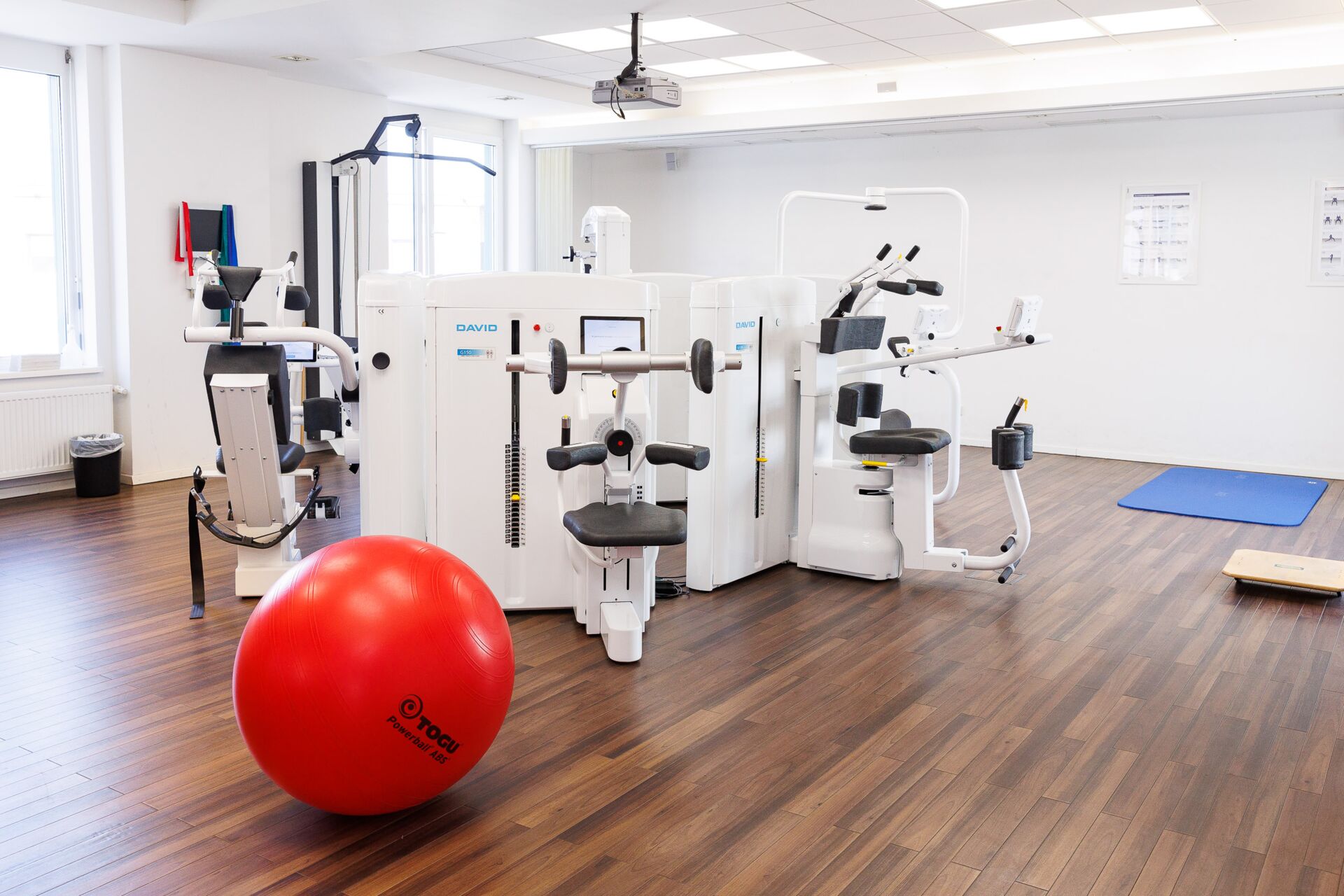 Wir verfügen über vier großzügige Trainingsräume mit speziellen Gerätestrecken (David), zwei Gymnastikräumen sowie 15 Physiotherapie- und zwei Ergotherapieräume.